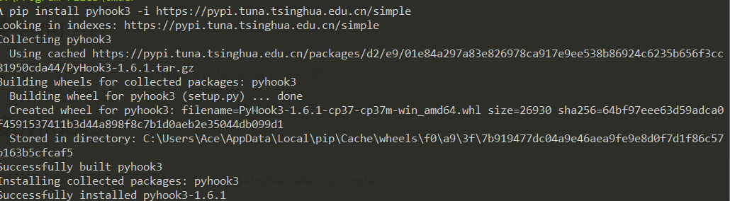 pip install pyhook3 -i https://pypi.tuna.tsinghua.edu.cn/simple