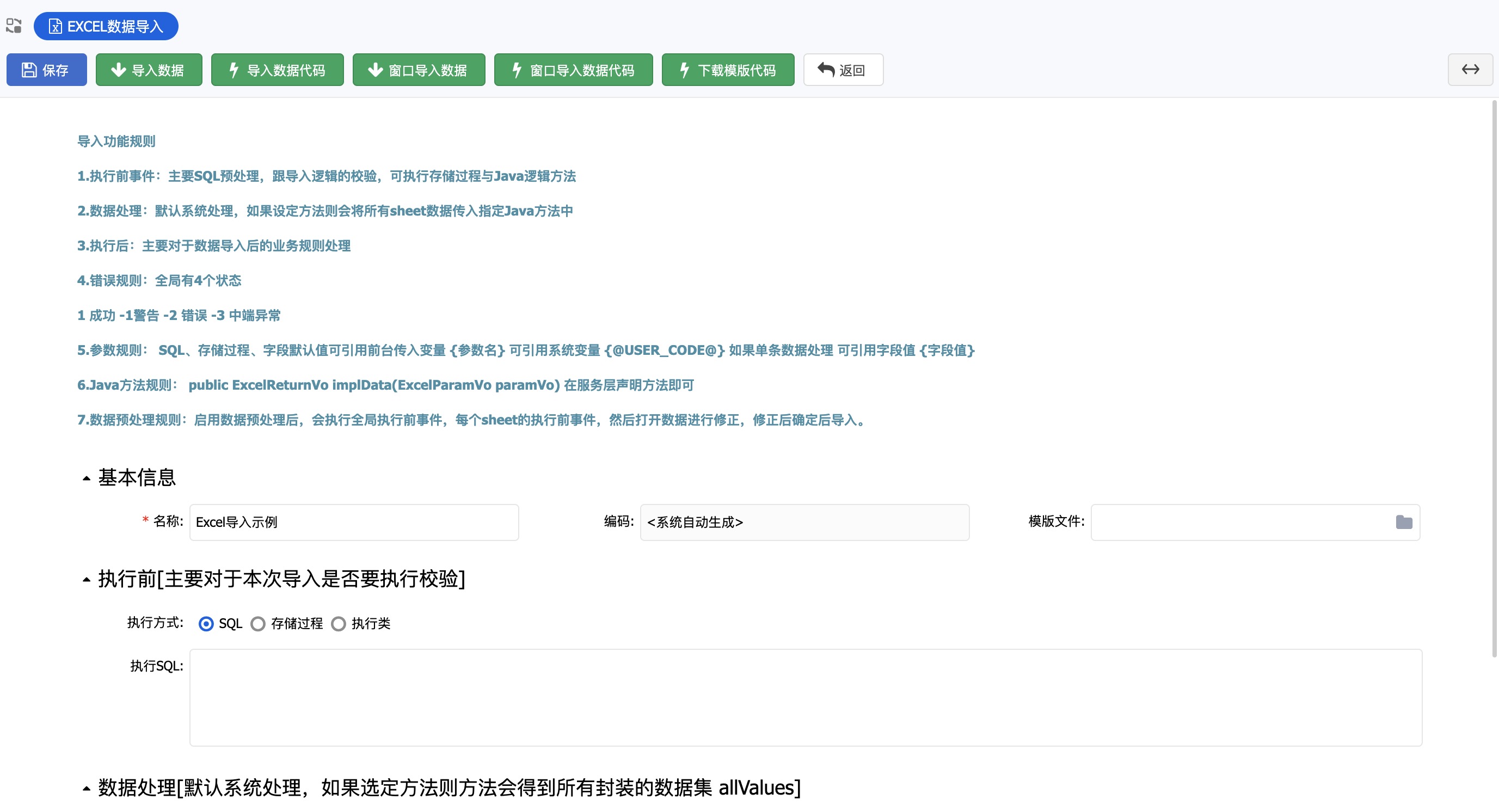 场景一:大量的业务数据需要录入时,可以定义Excel导入的数据模板,进行快速导入,可节省大量的填写数据时间。