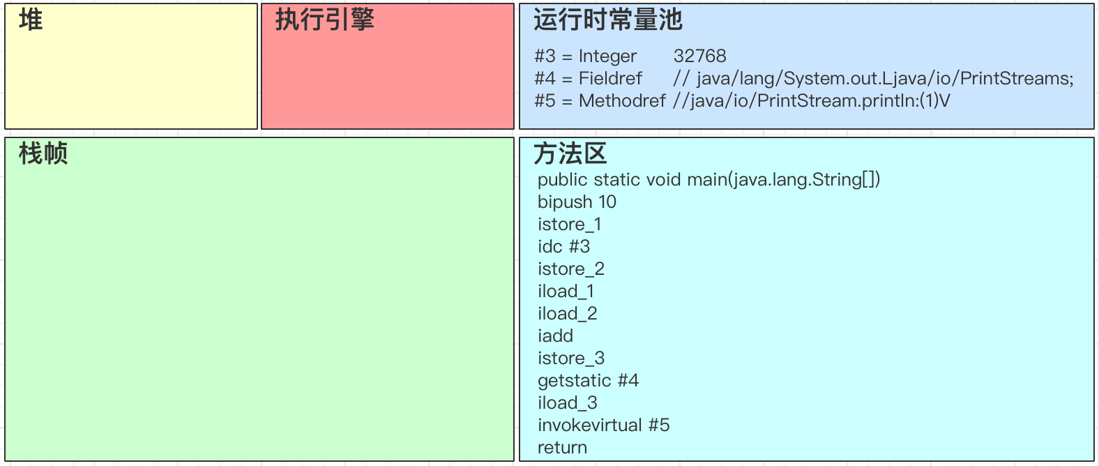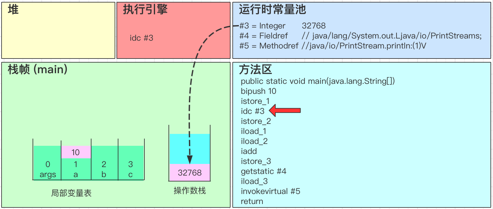 - idc 从常量池加载 #3 数据到操作数栈