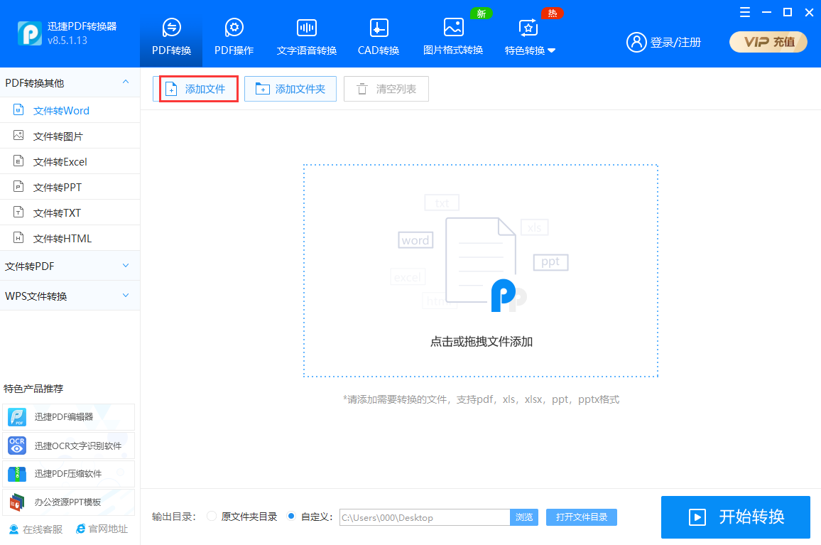 双击打开迅捷PDF转换器,你可以看到如下图中所示的界面。