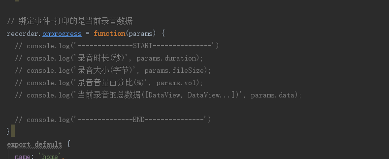 // console.log('当前录音的总数据([DataView, DataView...])', params.data);