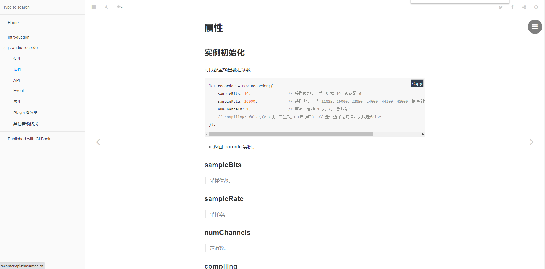 // compiling: false,(0.x版本中生效,1.x增加中) // 是否边录边转换,默认是false