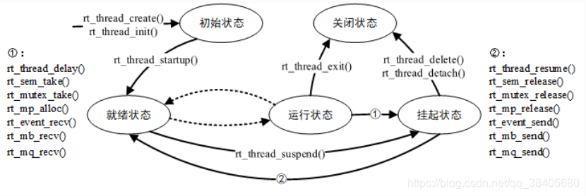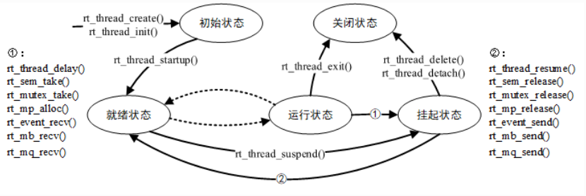 当线程不需要运行时,可以调用rt_thread_exit()处于关闭态。