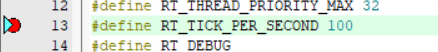 在程序中使用延时函数rt_thread_mdelay(num),延时num毫秒。就是又系统嘀嗒延时来完成的