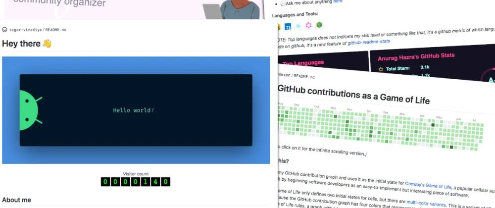 如果你正在为定制 GitHub 简介 README 寻找灵感或者素材,这里有一些过去几周让我大吃一惊的 README 例子。无论是纯粹的装扮和展示信息,或是令人惊叹的有趣艺术品,这些例子中都有。