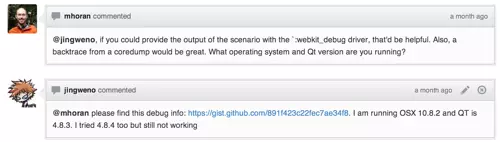 在合并请求、问题、或者任何评论中,sha和问题码(例如:#1)会被自动链接。并且,你也可以链接其它仓库的 sha 或者问题码,格式:user/repo@sha1 或者 user/repo#1。下面是一个评论中通过sha自动链接的例子: