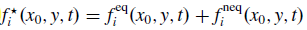 f[i][0][k] = feq(k, rho[i][0], u[i][0]) + f[i][1][k] - feq(k, rho[i][1], u[i][1]);