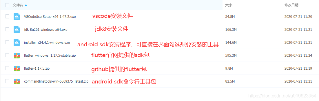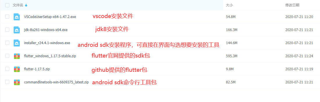 需要准备flutter sdk、java环境 jdk和android sdk,编辑器我选择使用的vscode,感觉vscode对内存优化比android studio做得好(占内存小),这个看个人喜好,编辑器相关配置可自行参考官网文档