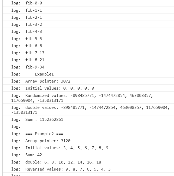 for (let i = 0; i < 10; i++) log(["fib", i, exports.fib(i)].join("-"));