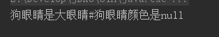 public class TwoTest { public static void main(String [] args) { Dog dog =new Dog(); dog.setEye("大眼睛"); dog.setEyeColour("黑色"); System.out.println("狗眼睛是"+dog.getEye()+"#狗眼睛颜色是"+dog.getEyeColour()); } }