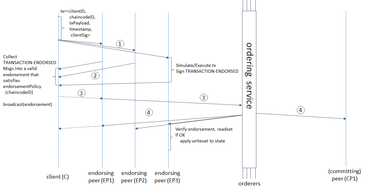(4)提交者(客户端,在这个例子中)是正确授权执行该操作,通道(也就是说,每个人都支持对等确保提交者满足频道的作家政策)。