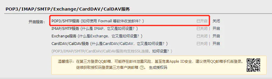 (此处不是要用到密码,而是要用到授权码,QQ邮箱为例)如何获取授权码呢?点击生成授权码,按提示操作