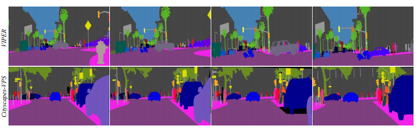 上图中,(b)语义分割的结果是相同语义的对象标成相同的颜色,(c)实例分割是对目标前景分个体的像素级标注来,(d)全景分割结合了语义分割和实例分割的结果。