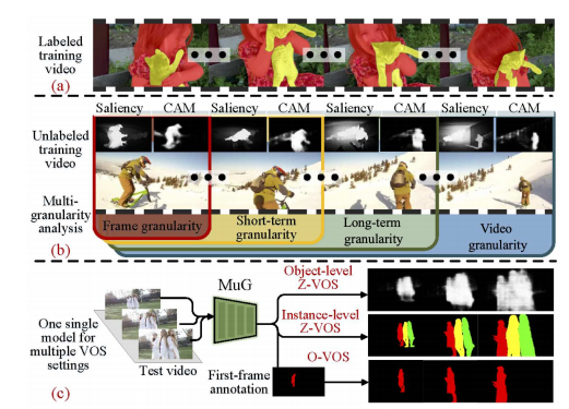 对视频中感兴趣的目标进行分割,给定第一帧mask的VOS称为one-shot VOS (单样本VOS),无第一帧目标mask的称为zero-shot VOS(无样本VOS)。(大家可以在下述论文 Learning Video Object Segmentation From Unlabeled Videos 中了解)
