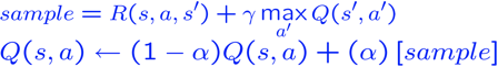 上面的等式是Q-Learning。我们从一些填充有随机值的向量Q(s,a)开始,然后收集与世界的交互并调整alpha。Alpha是一种学习率,因此当我们认为算法正在收敛时,我们将降低它。