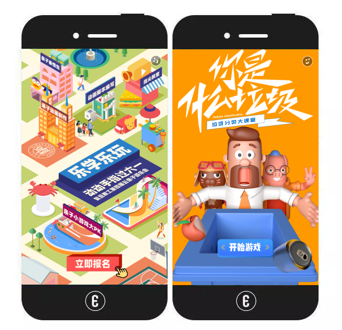 右图源自H5作品《垃圾分类小游戏》(3D插画)