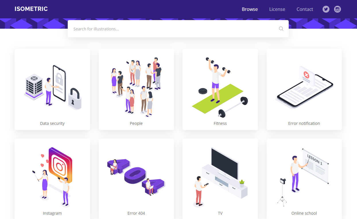 这个网站上有很多免费可商用的2.5D立体风插画,而且无需注册即可下载SVG和PNG两种格式。