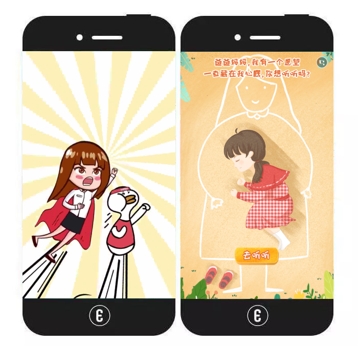 这类插画形象鲜明、生动有趣,且具有很强的亲和力和传播力,很多知名企业就非常青睐于卡通化的品牌表现方式,例如腾讯的企鹅、京东的狗、美团的袋鼠等。而在H5作品中,卡通风插画则主要用于描绘具有故事性的场景。