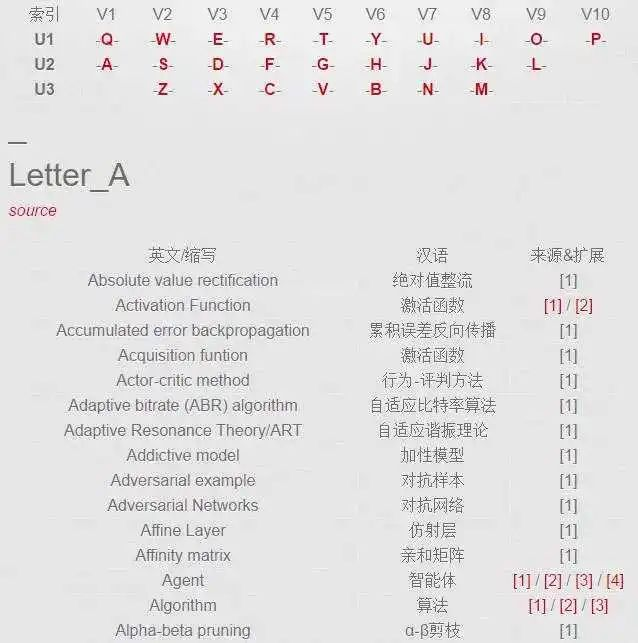 本词汇库目前拥有的专业词汇共计 760 个,主要为机器学习基础概念和术语,同时也是该项目的基本词汇。机器之心将继续完善术语的收录和扩展阅读的构建。