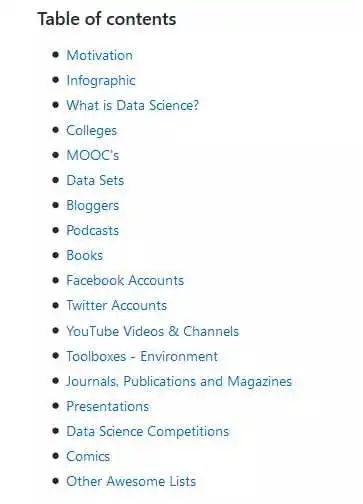 该 repo 是数据科学的基本资源。多年来的无数贡献构建了此 repo 里面的各种资源,从入门指导、信息图,到社交网络上你需要 follow 的账号。无论你是初学者还是业内老兵,里面都有大量的资源需要学习。