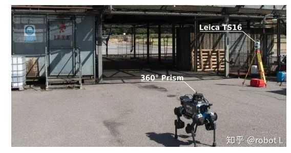 图4. 实验在ANYmal上执行。为了确定真值轨迹,我们使用Leica TS16激光跟踪器来跟踪机器人上的360度棱镜。
