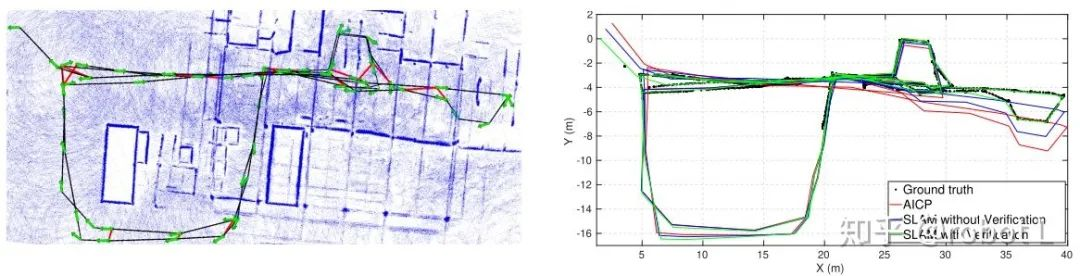 图7. 具有验证的SLAM系统(左);不同算法和真值的轨迹对比(右)。