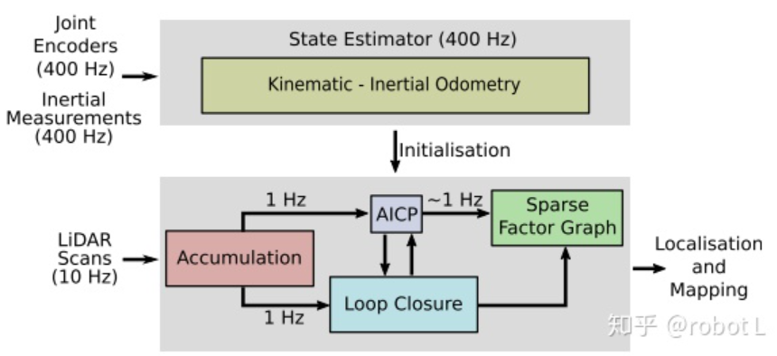 我们的目标是提供ANYmal长时间的无漂定位和准确的周围地图。图2和图3给出了系统的不同成分分别从硬件和软件的角度。
