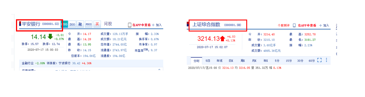 幸亏这位只是涨跌幅、收益率的简单分析,并不是股票投资分析。首先来看看平安银行和上证综合指数,代码是挺像,唯一区别是后缀不一样。那位作者误把股票代码和指数代码搞混。