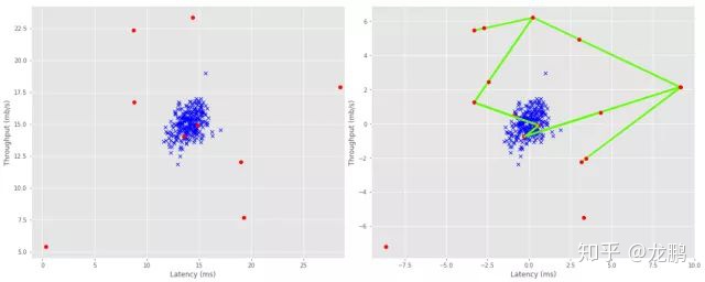 在python中,SMOTE算法已经封装到了imbalanced-learn库中,如下图为算法实现的数据增强的实例,左图为原始数据特征空间图,右图为SMOTE算法处理后的特征空间图。