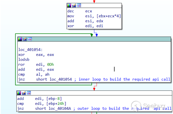 在两个循环内解析API调用,然后跳转到已解析API调用的地址来进行执行。