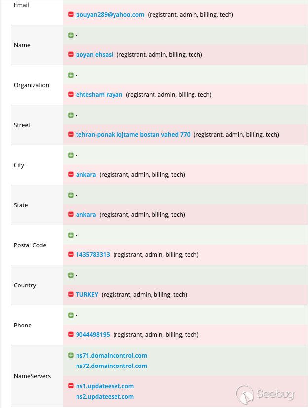 如前所述,承载远程模板的域在香港注册,而C2域“time.updateeset[.]在2020年2月29日以一家名为Ehtesham Rayan的伊朗公司的名义注册。这家公司过去提供AV软件,现在似乎已经关闭了。然而,这些都不是强有力的归因指标。