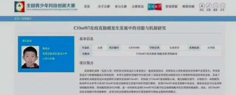但正如前文所述,陈灵石作为小学六年级学生,只获得了小学组的三等奖。如此说来,中学组、二等奖、一等奖获奖项目是不是可以冲刺诺奖水平了呢?