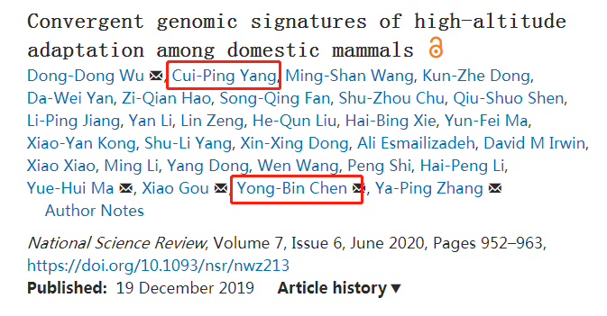 雷锋网在 National Science Review (雷锋网注:指中国第一份英文版综述性学术期刊《国家科学评论》)网站上找到了上述所说的论文,题为 Convergent genomic signatures of high-altitude adaptation among domestic mammals(家养哺乳动物高原适应的融合基因组标记)。