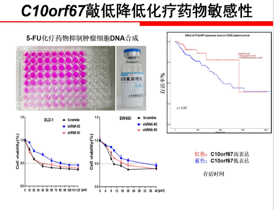 在进一步的研究中,陈灵石确认 C10orf67 可调节结直肠癌细胞对化疗药物的敏感性。