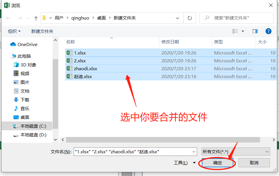 选择要合并的excel文件,点击"确定",静候几秒