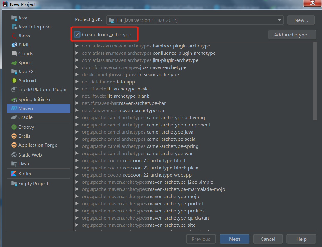 (1)点击左侧Maven,选择Jdk1.8,选中 Create from archetype,点击next。