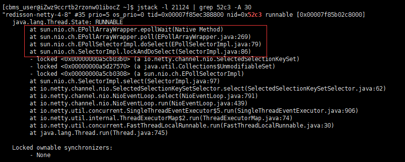 上图中,CPU占用率高的线程堆栈信息: 线程状态一直是RUNNABLE。