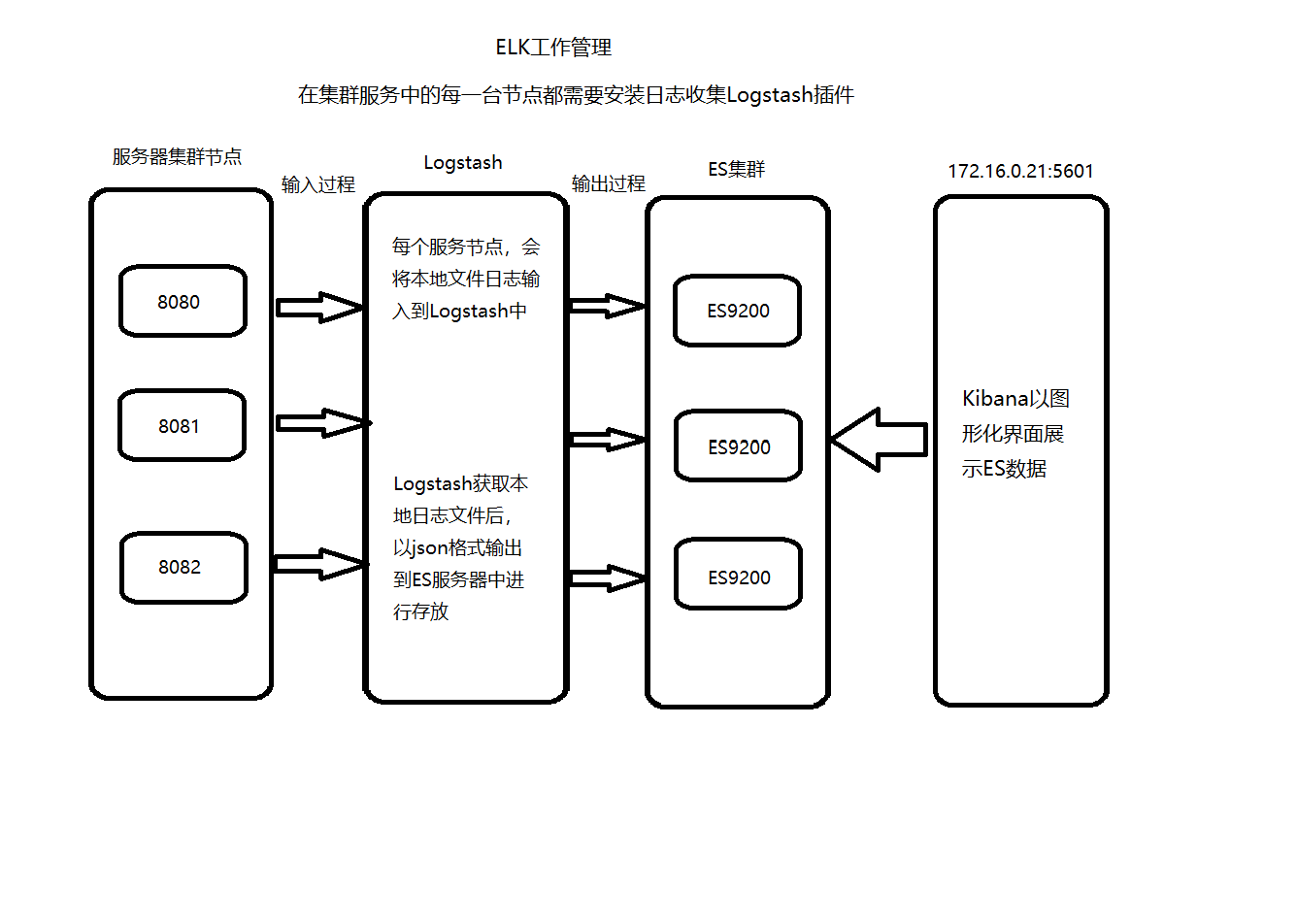2. 每台服务器节点将日志输入到 Logstash 中