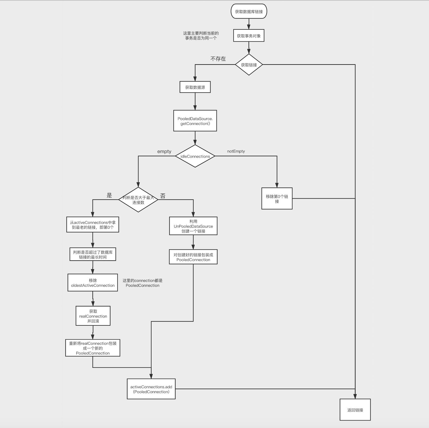 从这里可以看出,mybatis将我们配置的数据源的信息都存放在 UnpooledDataSource 中,将连接池的配置属性全都存放在 PooledDataSource中,如果使用了连接池类型的数据源,那么通过 UnpooledDataSource 数据源获取一个链接,然后将其放入由 PooledDataSource 中的 PoolState 里。利用组合复用了代码。