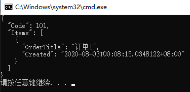 {"Code":101,"Items":[{"OrderTitle":"订单1"}]}