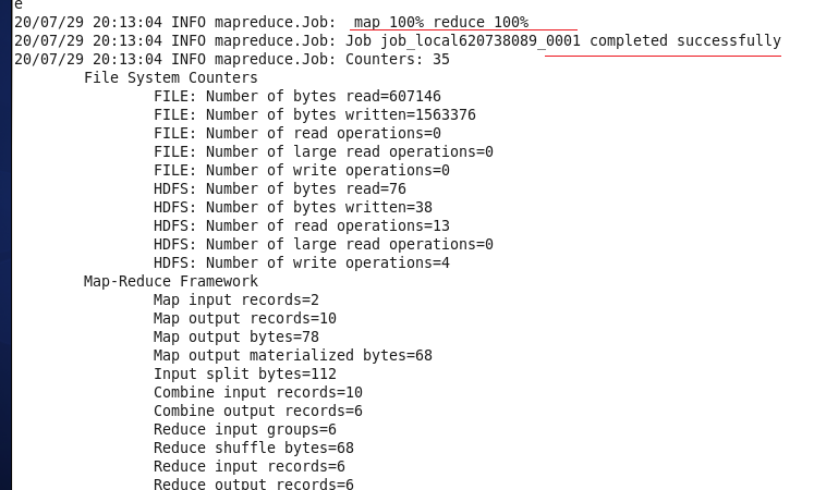 最终结果显示map和reduce都是100%则说明成功了。