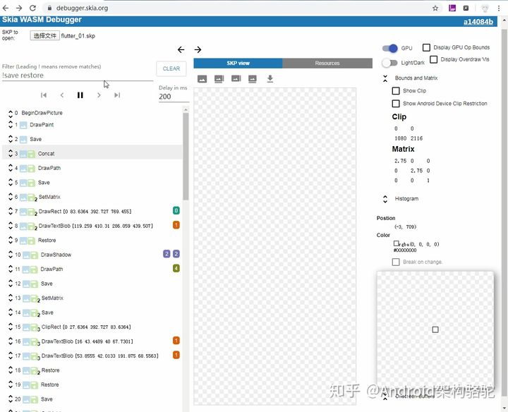 这里会生成一个skp格式的文件在你的项目根目录,然后上传文件到 https://debugger.skia.org/ (需fq)进行分析。