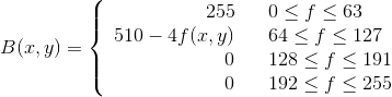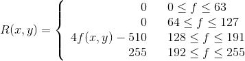 - The mapping relationship is as follows, where R(x,y), G(x,y) and B(x,y) represent the color values of channels R, G and B, respectively; f(x,y) represents the gray value of the grayscale image of a specific point; f is the gray value of the selected gray image.However, you have to understand that the relationship here is the transformation of 8 bitmaps.