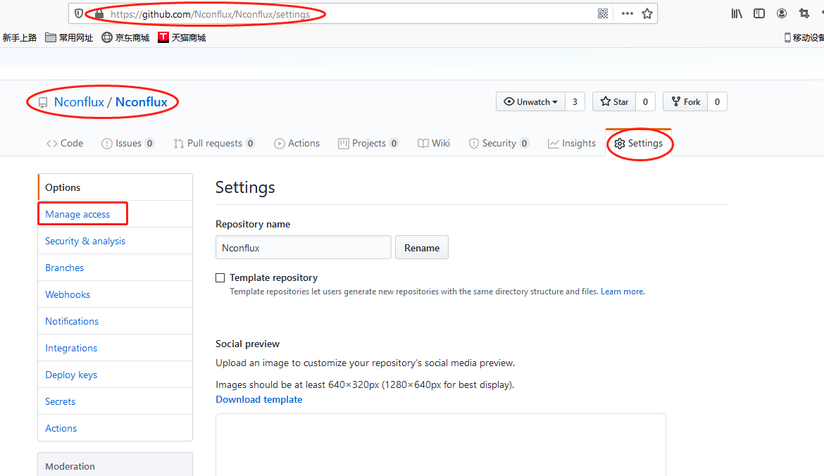 2、进入Nconflux项目,选择setting,注意下图对应的各项显示,后面将同组织功能做个比较,存在较大不同。