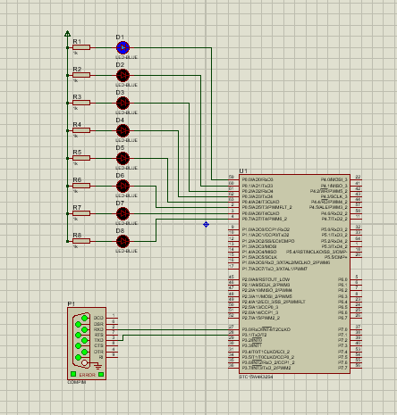 串口收发上位机的命令,实现对这 8 个发光二极管的控制。PC 端采用串口调试程序进