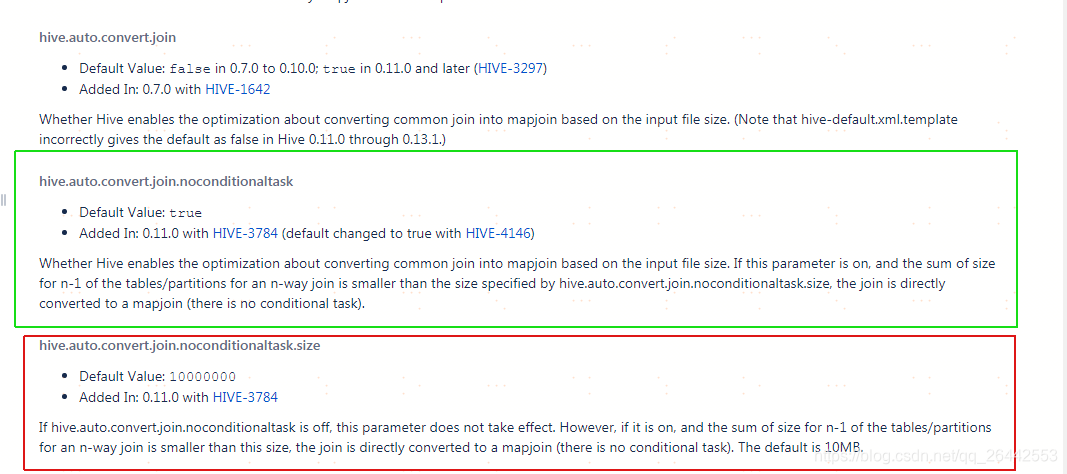 - set hive.auto.convert.join = true ; -- hive是否自动根据文件量大小,选择将common join转成map join 。hive 0.10 版本后的默认值 true。