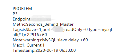 这是来自我们线上数据库的一个问题。我们是双主单写,这里约定写入的库为主库,没有写入的库为从库。我们的falcon偶尔会进行报警如下(频率很低):