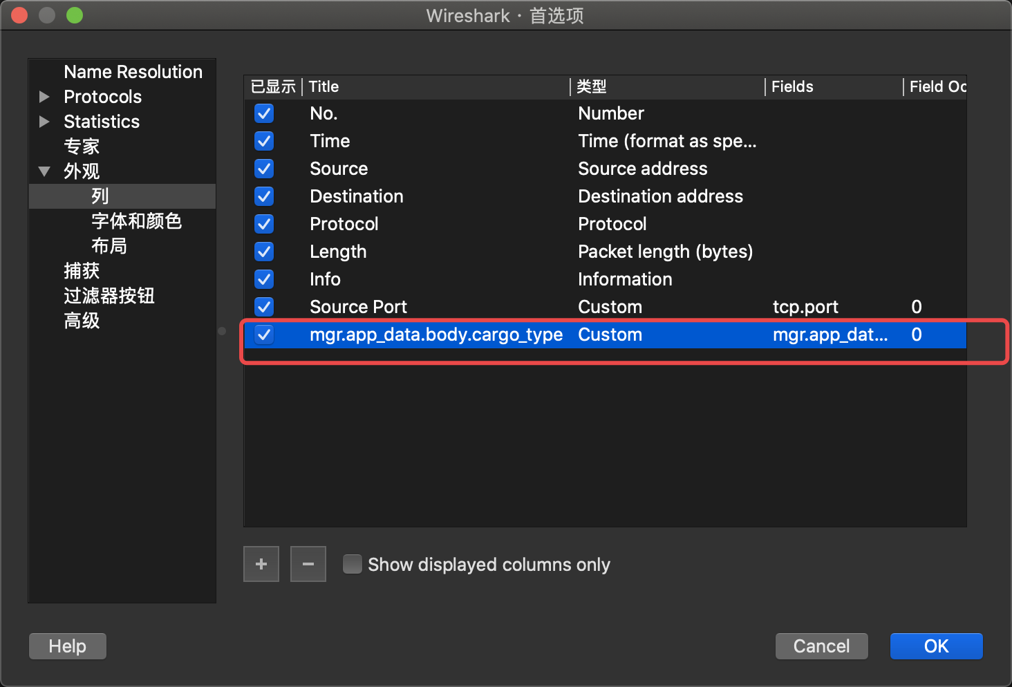 我们现在为 Wireshark 的列表增加一列,将 MGR 的信息类型显示出来: