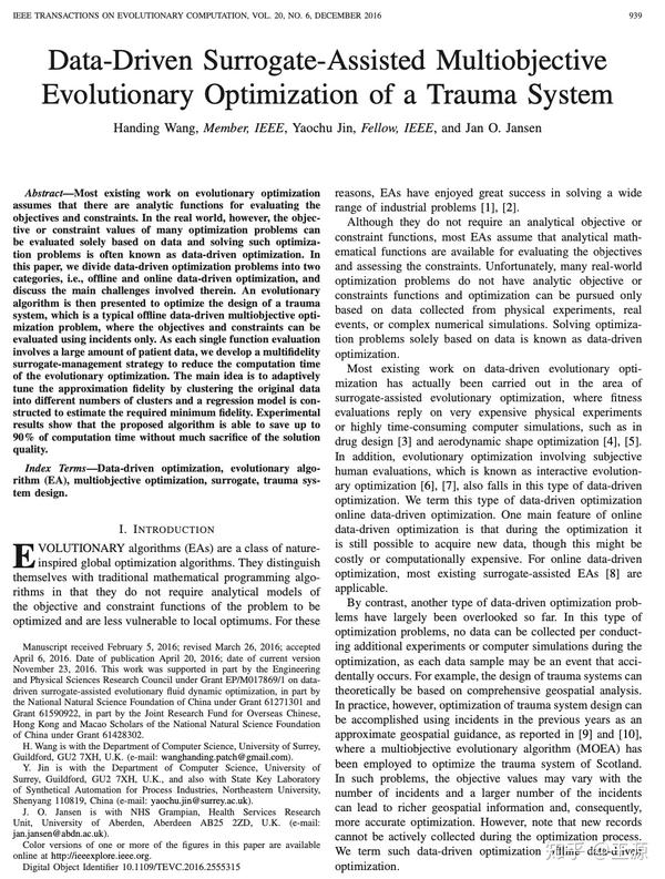 王晗丁教授,西安电子科技大学人工智能学院教授,研究方向包括计算智能、机器学习、多目标优化及代理模型。近五年发表高水平论文30余篇,包括计算智能领域国际顶级期刊《IEEE Trans. on Evolutionary Computation》、《IEEE Trans. on Cybernetics》、《Evolutionary Computation》和《Information Sciences》。