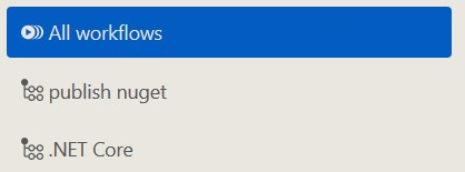 上面的代码就会添加命名是 publish nuget 的 workflow 在 action 页面可以通过对应的命名找到不同的 workflow 如